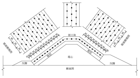 图5 堤头段扭王字块布置