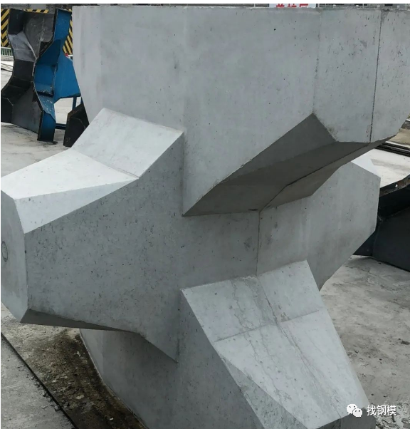 如果过度振捣, 又可能会出现过振离析, 出现砂斑, 所以, 要解决这些问题都需要掌握一个度。有些表面缺陷不能因小而放过, 尤其是构件肢杆的根部受拉区, 容易出现收缩龟裂缝, 应控制拆模不能过早, 避免根部出现微裂缝, 造成断肢隐患。
